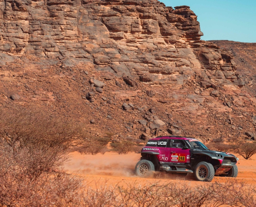 Depois de um regresso à competição particularmente duro– marcado por problemas mecânicos na etapa anterior e por muito tempo passado no pó e em trilhos degradados – a prioridade passou por evitar danos, poupar máquina e corpo e limitar riscos. Mas ainda assim, houve trabalho redobrado. Uma duna mais exigente deixou o MINI JCW T1+ preso, o que obrigou a dupla a cavar durante cerca de uma hora para conseguir seguir viagem. Os contratempos não se ficaram por aqui e seguiu-se um furo e mais tempo perdido. Na tentativa de recuperar algum tempo, Maria Luís aumentou o ritmo, mas acabou por pagara a fatura com novo furo. Restou completar a etapa com cautelas, garantindo a presença no final da etapa.